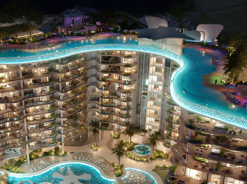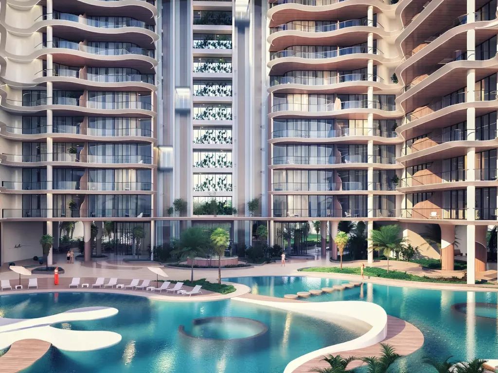 Q4/2027Manta Bay is a residential complex by Major Development, located on Al Marjan Island in the emirate of Ras Al Khaimah. The building stands out with architecture inspired by a sea wave: smooth façade lines and panoramic glazing create a sense of lightness and movement. The project includes two levels of underground parking, a ground floor, a mezzanine, 10 residential floors, and a roof, forming a modern waterfront space.