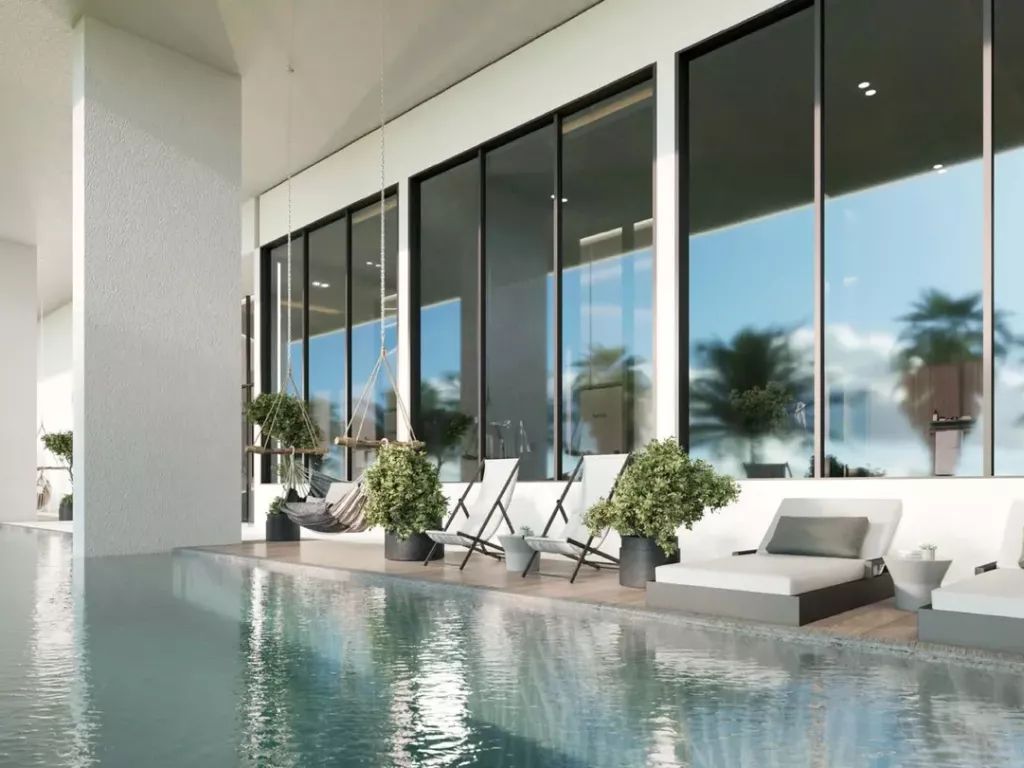 Residents have access to a wide range of amenities: swimming pools for adults and children, a gym, sports courts, a yoga studio, a spa, and a sauna. A special advantage is a private white-sand beach and a waterfront promenade over 5 km long.