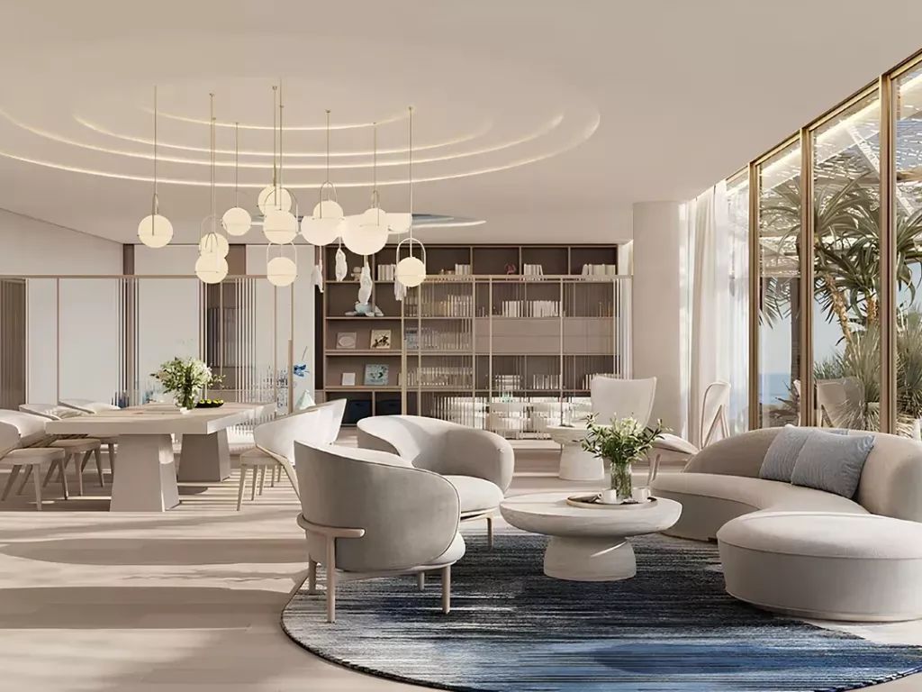 The complex offers 803 residences: apartments with 1–4 bedrooms, as well as 5-bedroom sky villas and sky terraces. The interiors are designed in a calm palette using wood, marble, ceramics, and metallic accents. The spaces are created to combine aesthetics, comfort, and a sense of relaxed luxury.