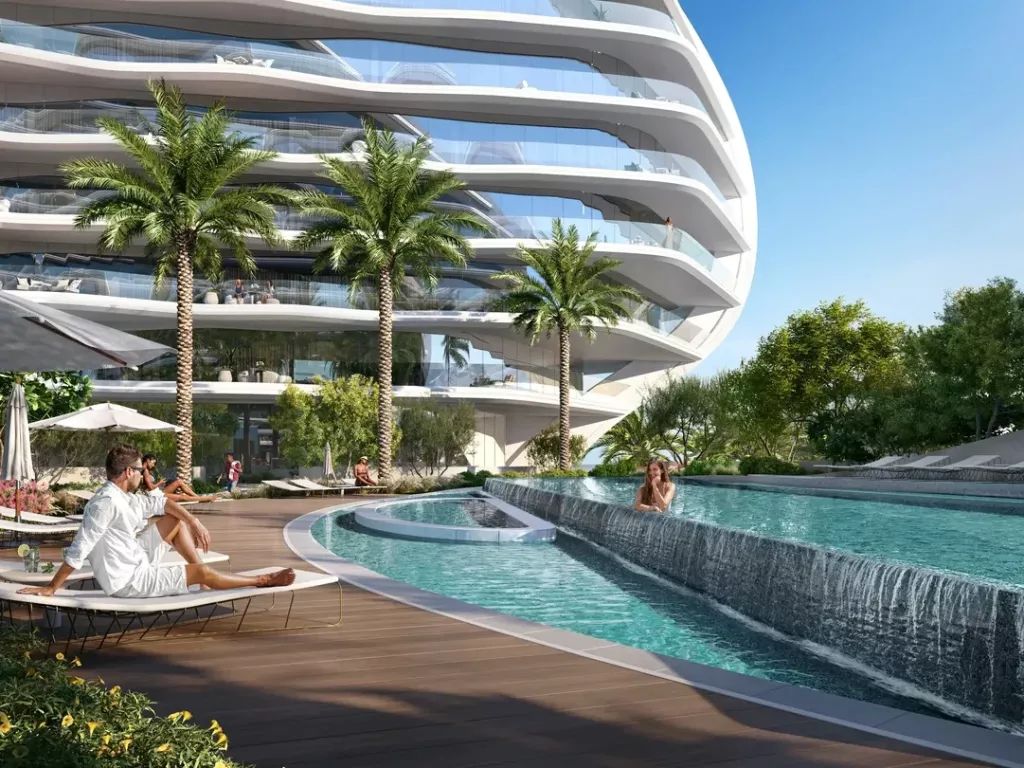 Residents have access to premium amenities including a Sky restaurant surrounded by the first 360-degree panoramic pool in RAK, a modern fitness center, a SPA with pools, landscaped relaxation areas, golf courses, restaurants, and bars. Concierge services are also provided, making everyday living exceptionally comfortable and prestigious.