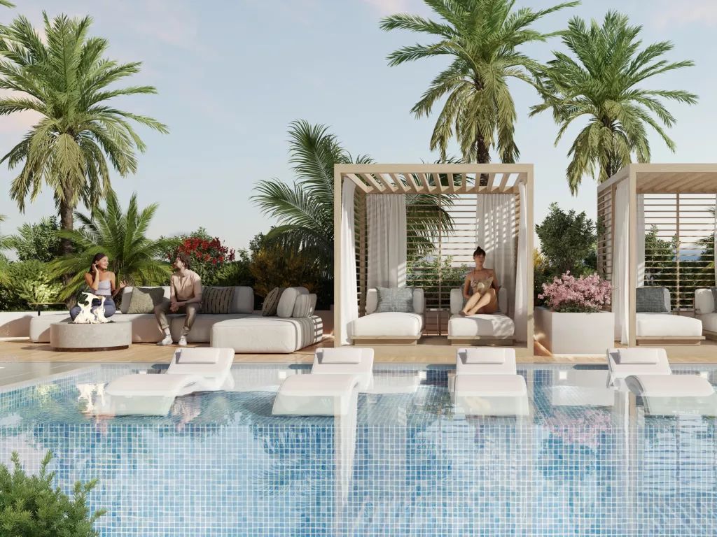 Life in the complex offers a full range of amenities for comfortable relaxation and active leisure. Residents can enjoy the expansive infinity pool, various relaxation areas, as well as a modern gym and children’s playgrounds with interactive features.