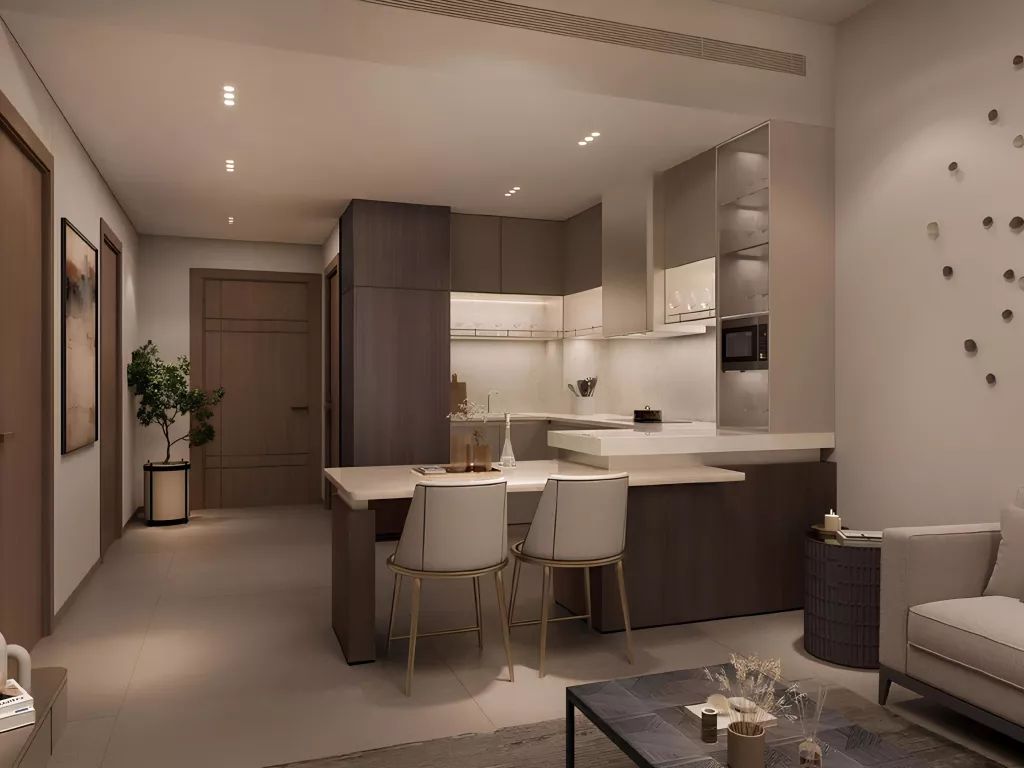 The complex is located in Arjan — a developing area with convenient access to Dubai’s main attractions. Nearby are shops, cafes, and essential infrastructure facilities. The area combines a calm atmosphere with good transport accessibility.