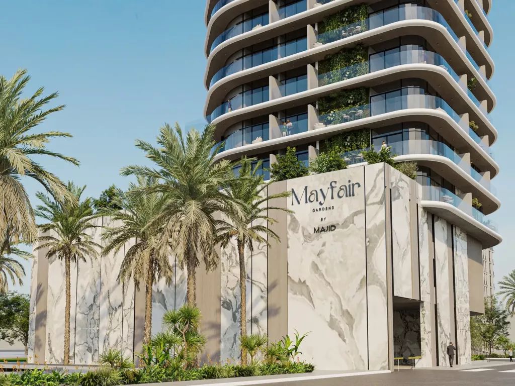 Q2/2026Mayfair Gardens is a residential complex by Majid Developments, located in the Jumeirah Garden City area of Dubai. The project includes a ground floor, two parking levels, 8 residential floors, and a rooftop with communal spaces. The architecture and design are выполнены in a modern style with an emphasis on elegance, while thoughtful details create a sense of comfort and privacy in the heart of the city.