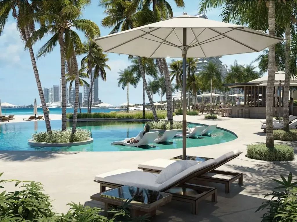 Residents have access to a wide range of amenities, including an infinity pool, yoga area, gym, SPA, private beach, waterfront park, and promenade. The complex also features sports courts, an observation deck, cafés, lounges, shops, a multipurpose hall, and both indoor and outdoor play areas for children.