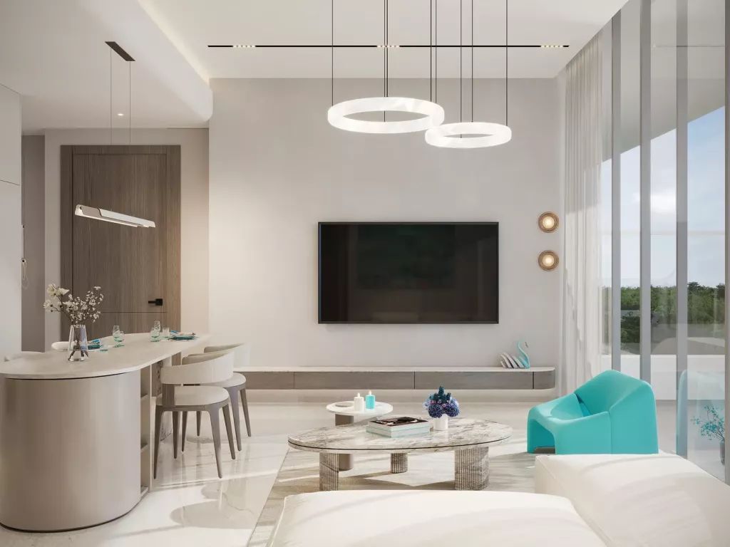 Residents have access to a wide range of amenities, including an infinity pool, open-air cinema, fitness areas for crossfit, yoga, and boxing, coworking spaces, children’s playgrounds, and even a zipline. The rooftop features sports facilities such as cricket fields, padel courts, squash courts, and a skate park, creating a unique environment for an active lifestyle.