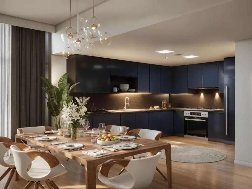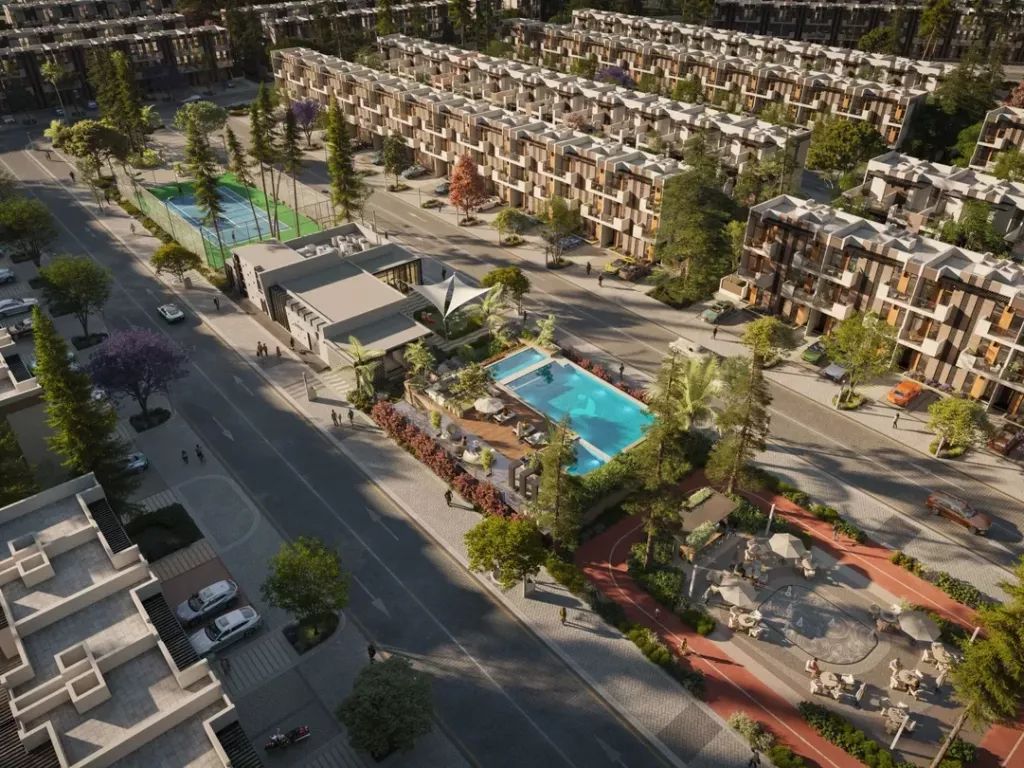 The complex offers 3–5 bedroom townhouses with thoughtfully designed layouts. Residences include balconies or terraces, master bedrooms, guest bathrooms, and bedrooms with en-suite bathrooms. Interiors are finished in natural tones using high-quality materials, built-in furniture, and fully equipped bathrooms. Each unit also features private parking and a landscaped plot.