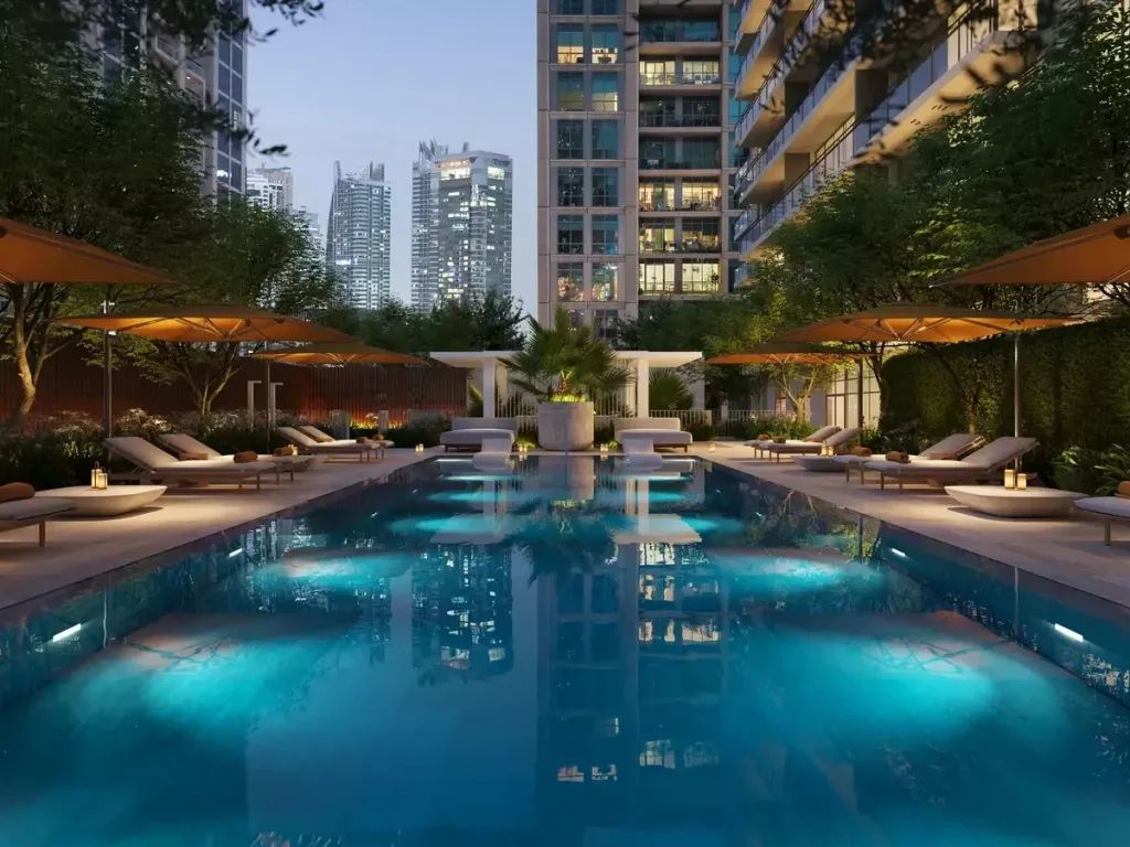 Residents have access to a wide range of amenities, including a private beach club, SPA with sauna and hammam, fitness center, yoga studio, cinema room, coworking lounge, and golf simulator. The complex offers a high level of service and comfort in line with international branded residence standards.