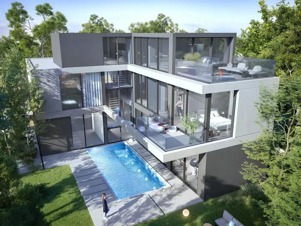 Le projet propose des maisons de ville de 2 à 4 chambres et des villas de 4 à 6 chambres. Chaque résidence dispose d’un design individuel, de plans spacieux et de terrasses. Les intérieurs sont réalisés dans un style moderne avec des matériaux de qualité, et de grandes fenêtres remplissent l’espace de lumière et créent une sensation de confort.