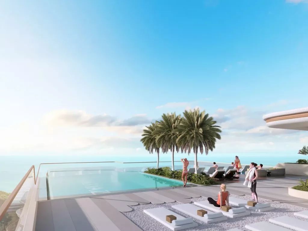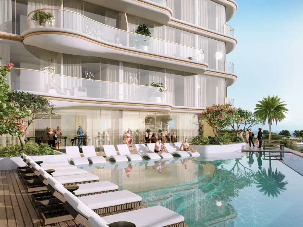 В комплексе представлены апартаменты с 1–3 спальнями, а также роскошные двухуровневые пентхаусы с 3 спальнями. Интерьеры выполнены в нейтральной цветовой гамме с элегантными золотыми акцентами, создающими атмосферу уюта и спокойствия. Панорамные окна открывают впечатляющие виды на море и городской пейзаж, наполняя пространство естественным светом.