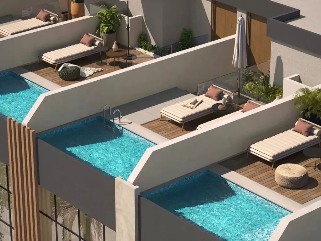 В комплексе представлены 312 таунхаусов с 4 спальнями с продуманными планировками. Каждая резиденция включает отдельные ванные комнаты для всех спален, просторные балконы и частные бассейны. В некоторых домах предусмотрены лифты. Интерьеры выполнены с использованием качественных материалов, а кухни оснащены встроенными шкафами и столешницами. Центральная система кондиционирования обеспечивает комфорт в любое время года.