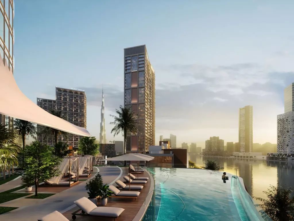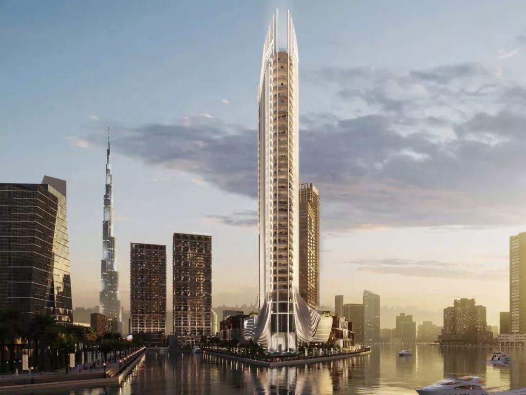 В комплексе представлены просторные резиденции с панорамными окнами и видами на городской горизонт и Dubai Canal. Интерьеры выполнены в светлой нейтральной палитре с использованием высококачественных материалов, что формирует атмосферу утончённой роскоши и комфорта.