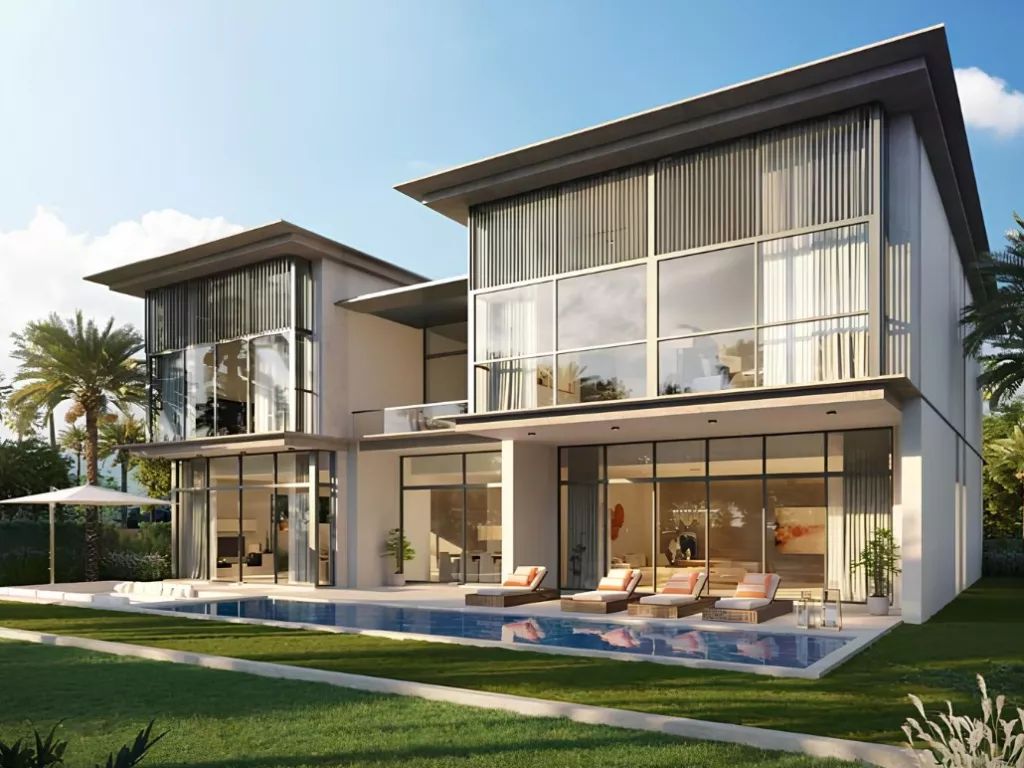 Внешний облик резиденций отличается элегантностью и чистыми архитектурными линиями. Панорамные окна наполняют дома естественным светом и открывают виды на зелёные поля и ухоженные парки. В проекте представлены виллы с четырьмя, пятью и шестью спальнями — формат, ориентированный на большие семьи и покупателей, ценящих пространство и уединение. Интерьеры выполнены с использованием премиальных материалов: просторные гостиные, современные кухни и продуманные ванные комнаты создают атмосферу высокого уровня комфорта.